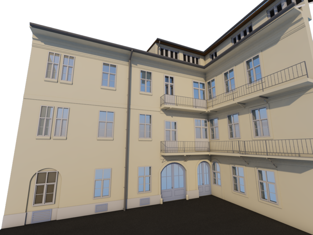 Die Maßnahme dient der gestalterischen und baulichen Aufwertung der Hoffassade sowie der Wiederannäherung an die ursprüngliche architektonische Charakteristik des Gebäudes.